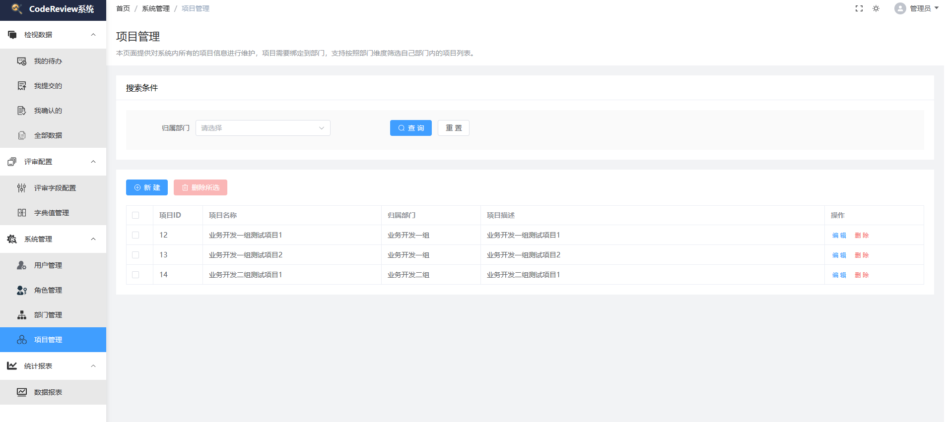在本系统中,代码Review记录是以项目维度进行区分的,所以在正式使用本系统前,需先录入下对应项目信息。