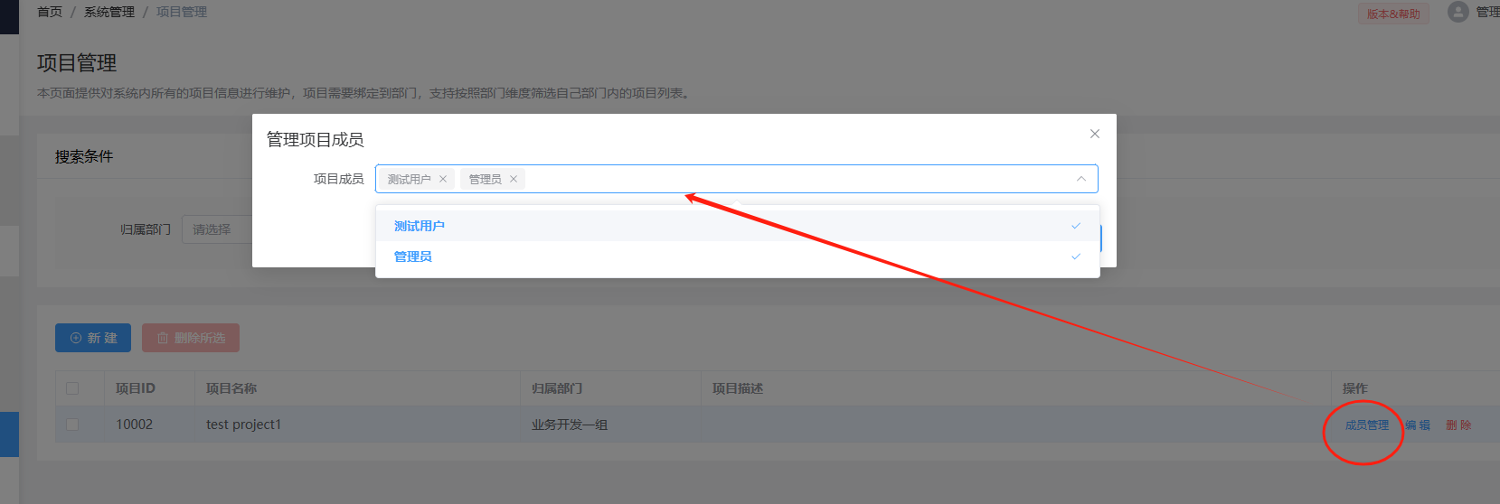 注意:项目需要隶属于一个部门、当前每个项目仅支持隶属于唯一的一个部门,不支持多个部门共享同一个项目。
